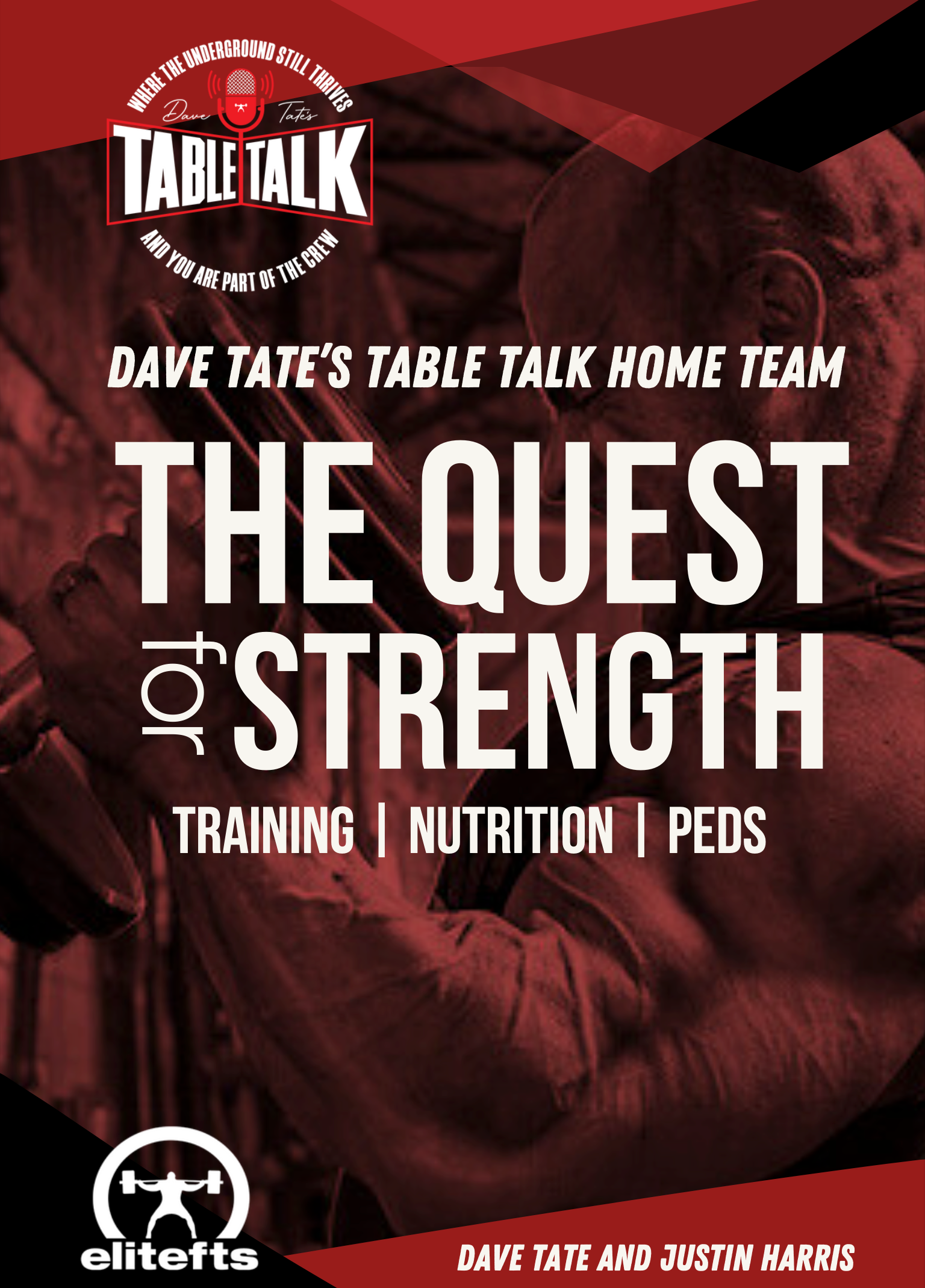 Begin your journey to top-tier fitness with "The Quest for Strength" by Dave Tate and Justin Harris. This comprehensive eBook distills nearly 15 hours of expert discussions from the acclaimed Dave Tate’s Table Talk Podcast into an indispensable guide on strength training, nutrition, and PEDs. You read that right...15 HOURS of podcast discussion distilled down to 50 pages.