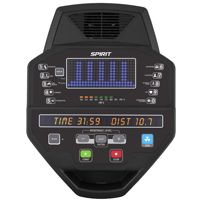 As with any product, a major importance is the user interface. We focused on making everything easily accessible and comfortable: A storage tray for a phone, keys, or an MP3 player, ergonomically friendly pulse grip handles for a more natural hand position, and a Turbo cooling fan to keep your clients cool and encourage them to workout longer. A quick press of a button and your clients are off on one of the many specialized workouts such as the Fit Test or Constant Power programs. Our large, easy-to-read console gives your clients constant feedback from calories to distance to time.