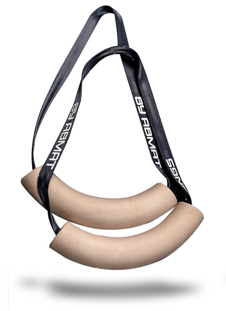 Made of textured polypropylene plastic, the rings are free from any engraving or embossing so there’s nothing to distract you from your workout or irritate your hands. The webbing is made of 5/8” AbMat branded nylon webbing. The rings are available in black or tan.